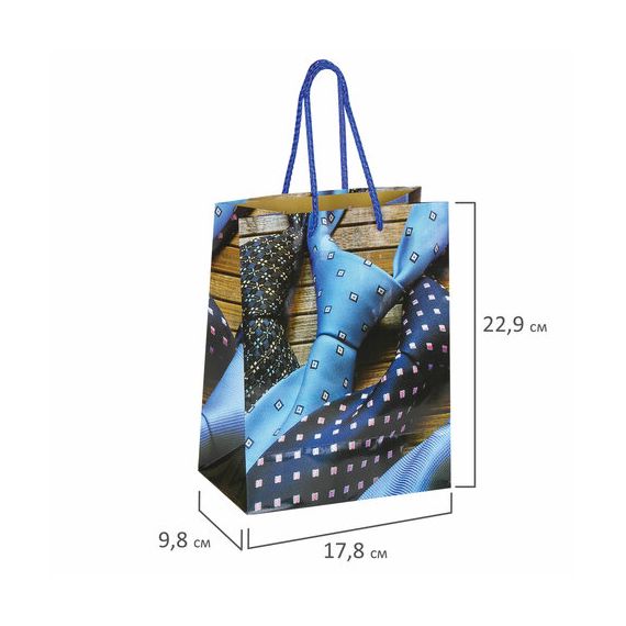 Пакет подарочный (1 штука) 18x10x23 см, ЗОЛОТАЯ СКАЗКА "Галстуки", ламинированный