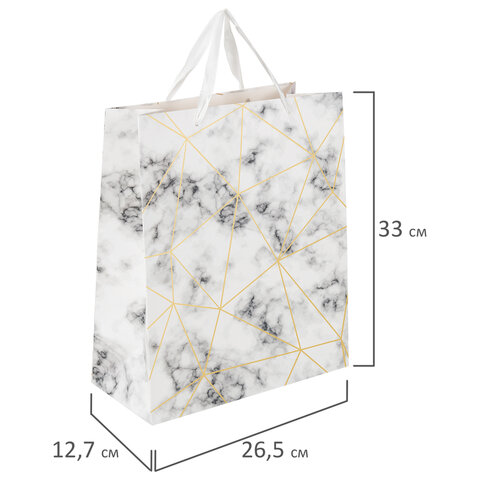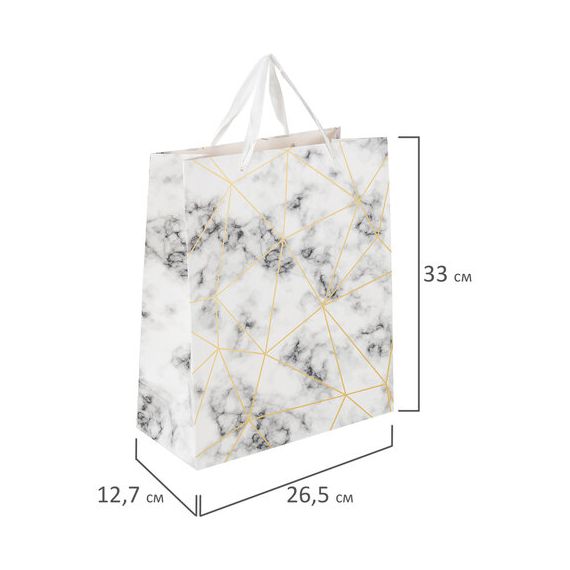 Пакет подарочный (1 штука) 26x13x33 см, ЗОЛОТАЯ СКАЗКА "Golden Marble", тиснение фольгой