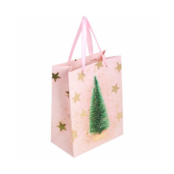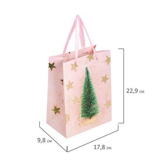 Пакет подарочный (1 штука) новогодний 18x10x23 см, ЗОЛОТАЯ СКАЗКА "Pink Ivory", фольга