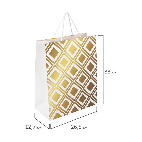 Пакет подарочный 26,5x12,7x33 см ЗОЛОТАЯ СКАЗКА "Gold Luxury", тиснение фольгой, белый
