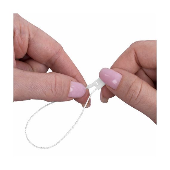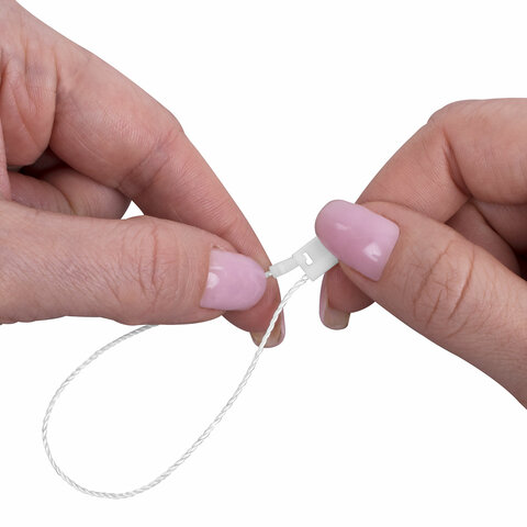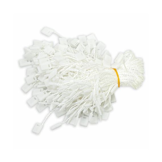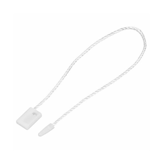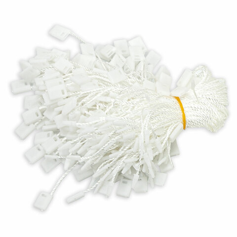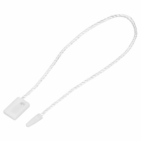 Минималистичный классический дизайн в белом цвете будет органично смотреться с любым товаром и придаст ему презентабельный внешний вид. Общая длина изделия: 17 см. Размер пластиковой пломбы: 10х7 мм. Комплект состоит из 1000 шт. (каждые 200 шт. перевязаны банковской резинкой). Упаковка: полиэтиленовый пакет.